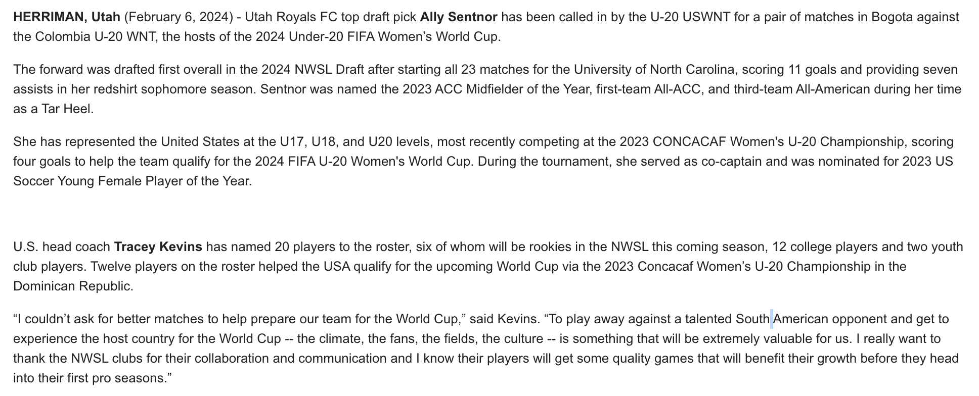 Source : www.sportingnews.comSalt City FC on X: “#URFC rookie Ally Sentnor has been called up