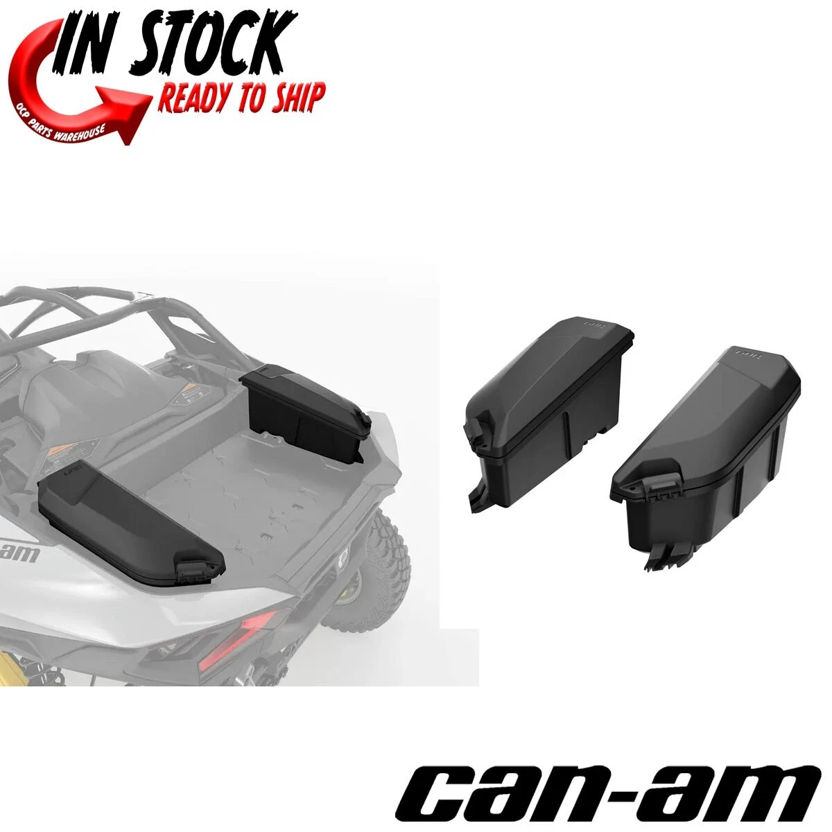 Source : can-am.brp.comCAN AM LINQ SIDE CARGO BOXES 2024 CAN AM MAVERICK R OEM NEW