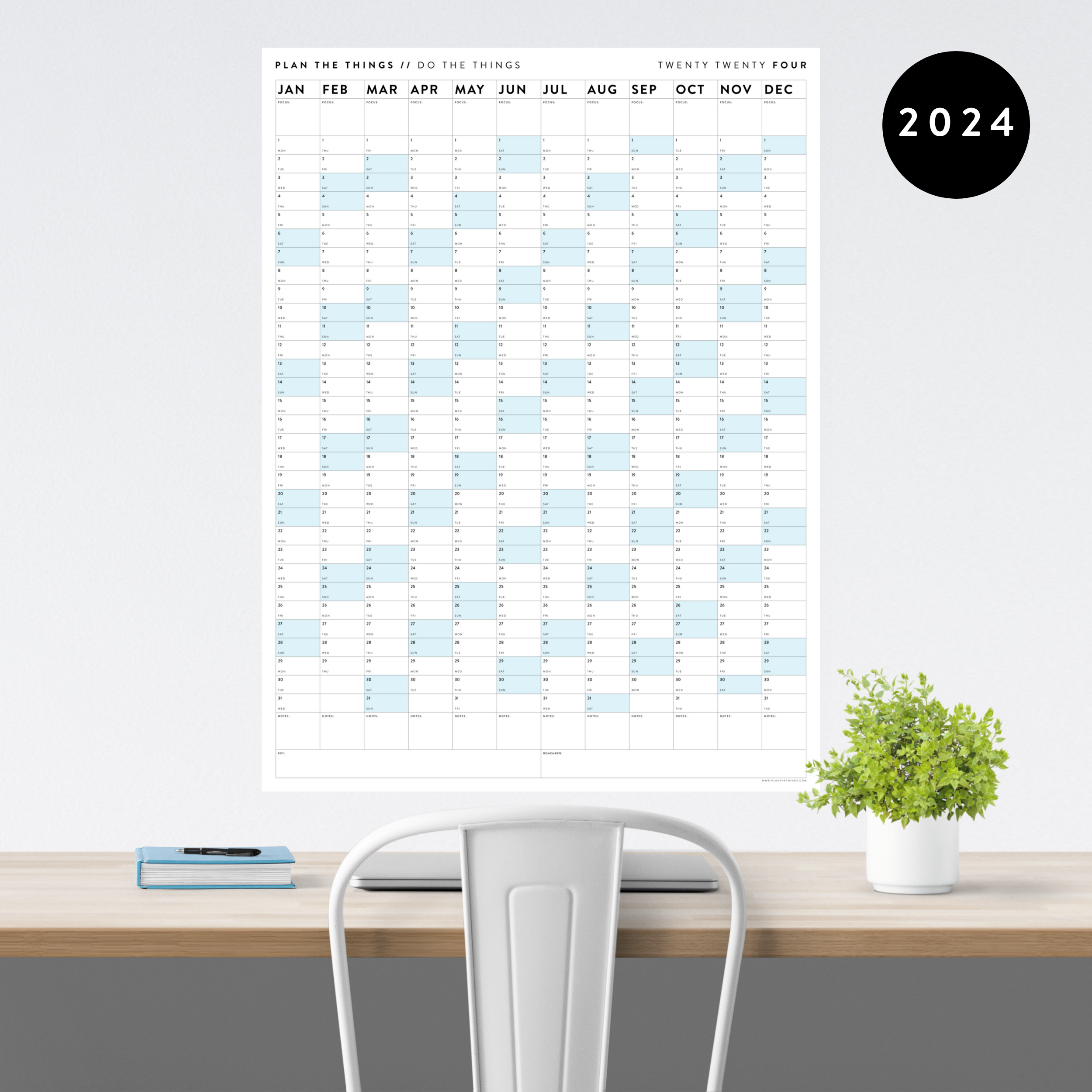 Source : homeprintables.comPRINTABLE VERTICAL 2024 WALL CALENDAR WITH BLUE WEEKENDS INSTANT